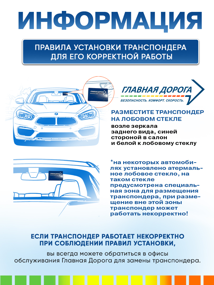 Транспондер Главная Дорога предназначен для удобной и бесконтактной оплаты проезда по платным дорогам Российской Федерации. Он совместим с транспондерами ЗСД и Автодор, что позволяет использовать его на всех платных маршрутах страны.